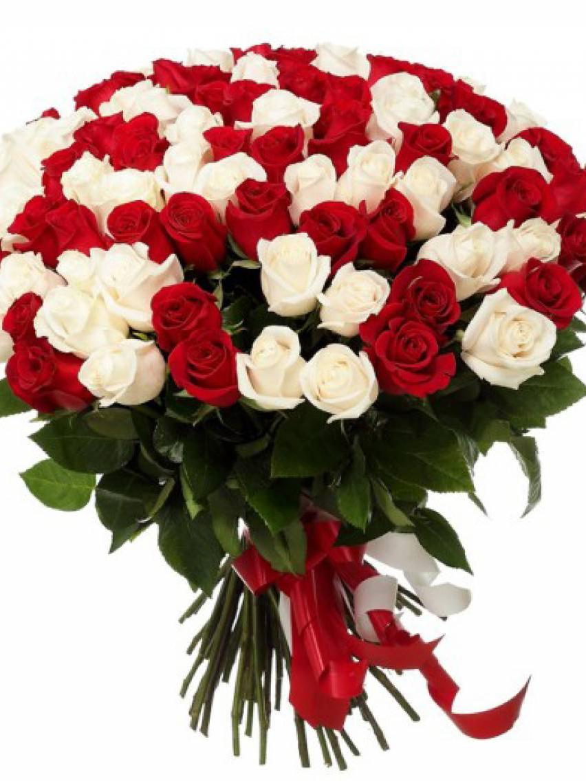 Raudonų / baltų rožių puokštė 101 vnt - 60 cm