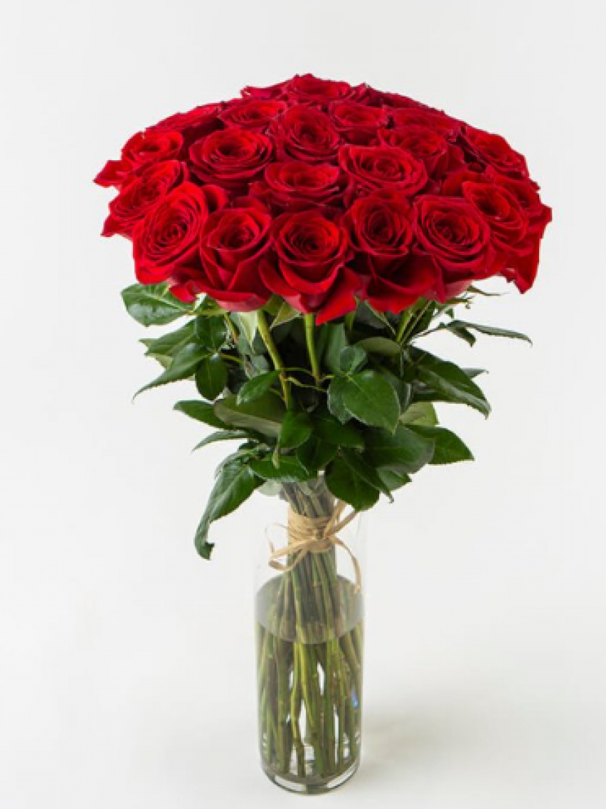 Karališkųjų raudonų rožių "Naomi" puokštė 25 vnt - 70 cm.