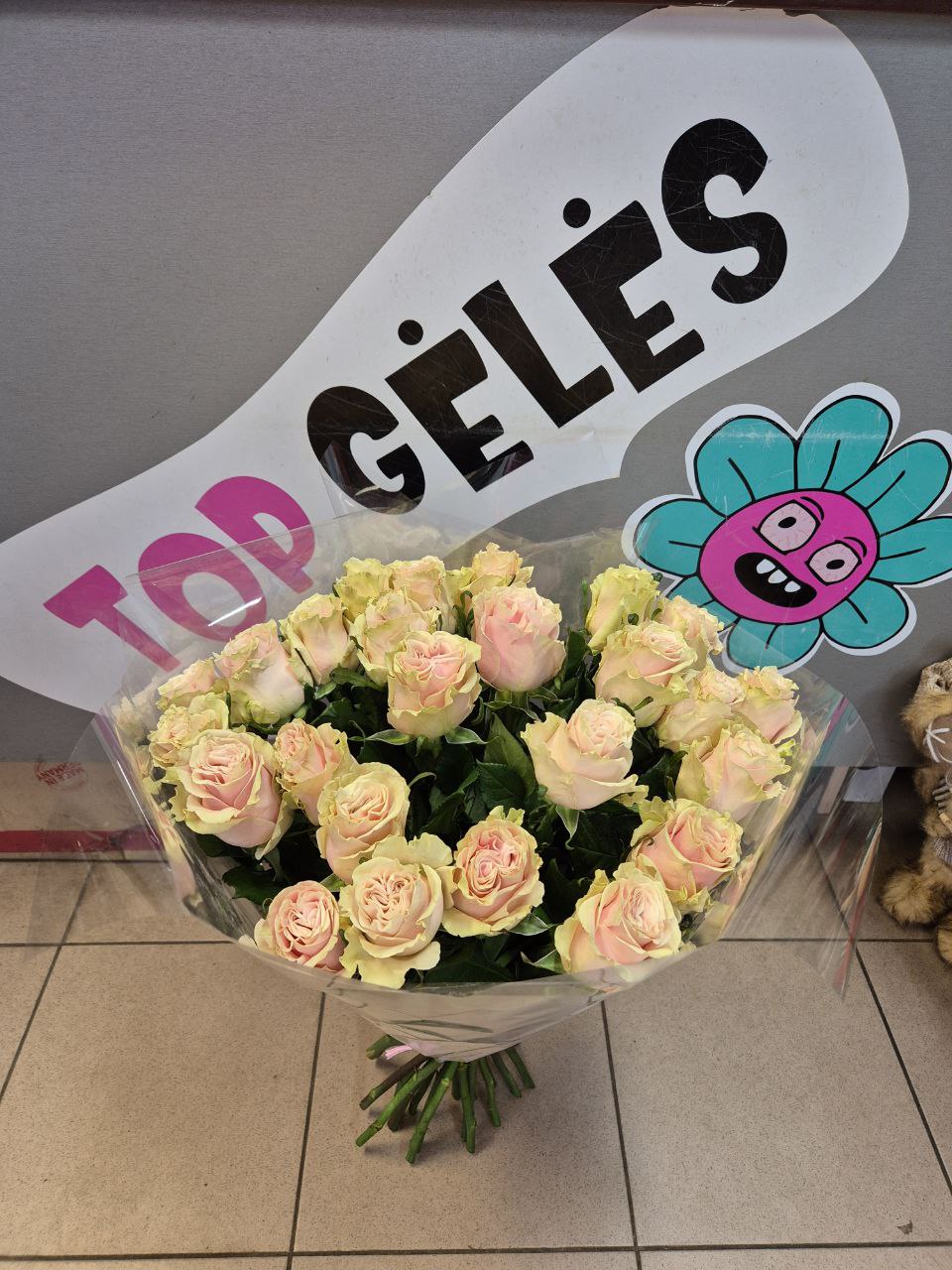 Puokštę sudaro krupščiai supakuota 25 vnt šviežiai rožinių rožių puokštė.