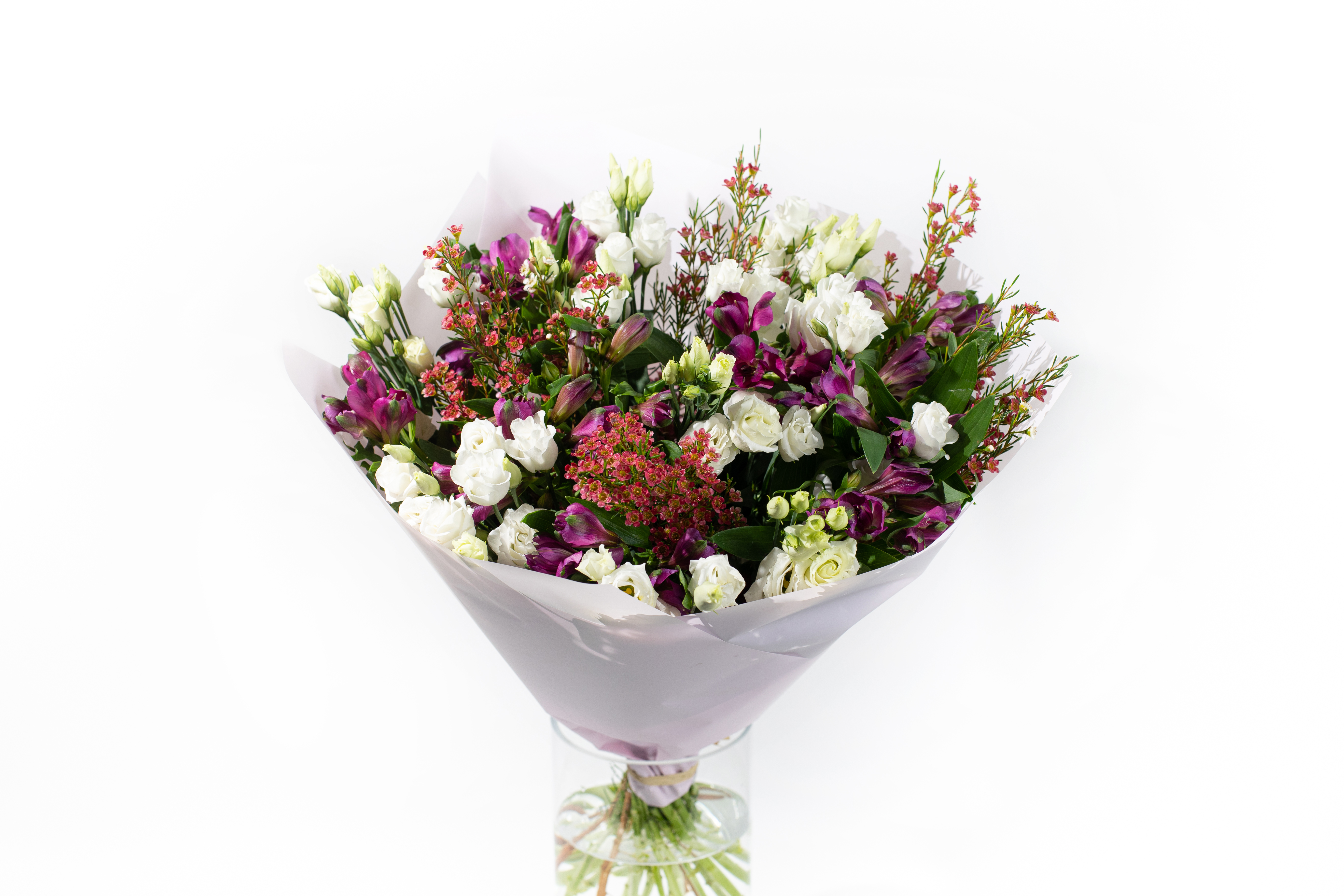 Ši puokštė sudaryta iš eustomų, kurios suteikia jaukumo bei jaunatviškumo, o spalvingosios alstromerijos leidžia pasinerti ir mėgautis gaivia diena vis iš naujo.